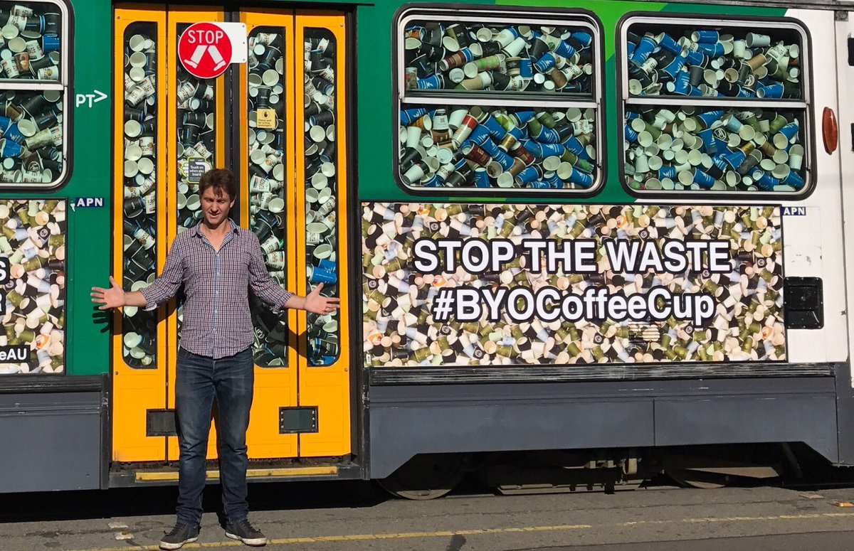 It can be difficult to imagine what 50,000 coffee cups would look like, so Reucassel has done the hard work for us. Reucassell filled an entire Melbourne tram with used coffee cups, to highlight how many coffee are going into landfill every half an hour.